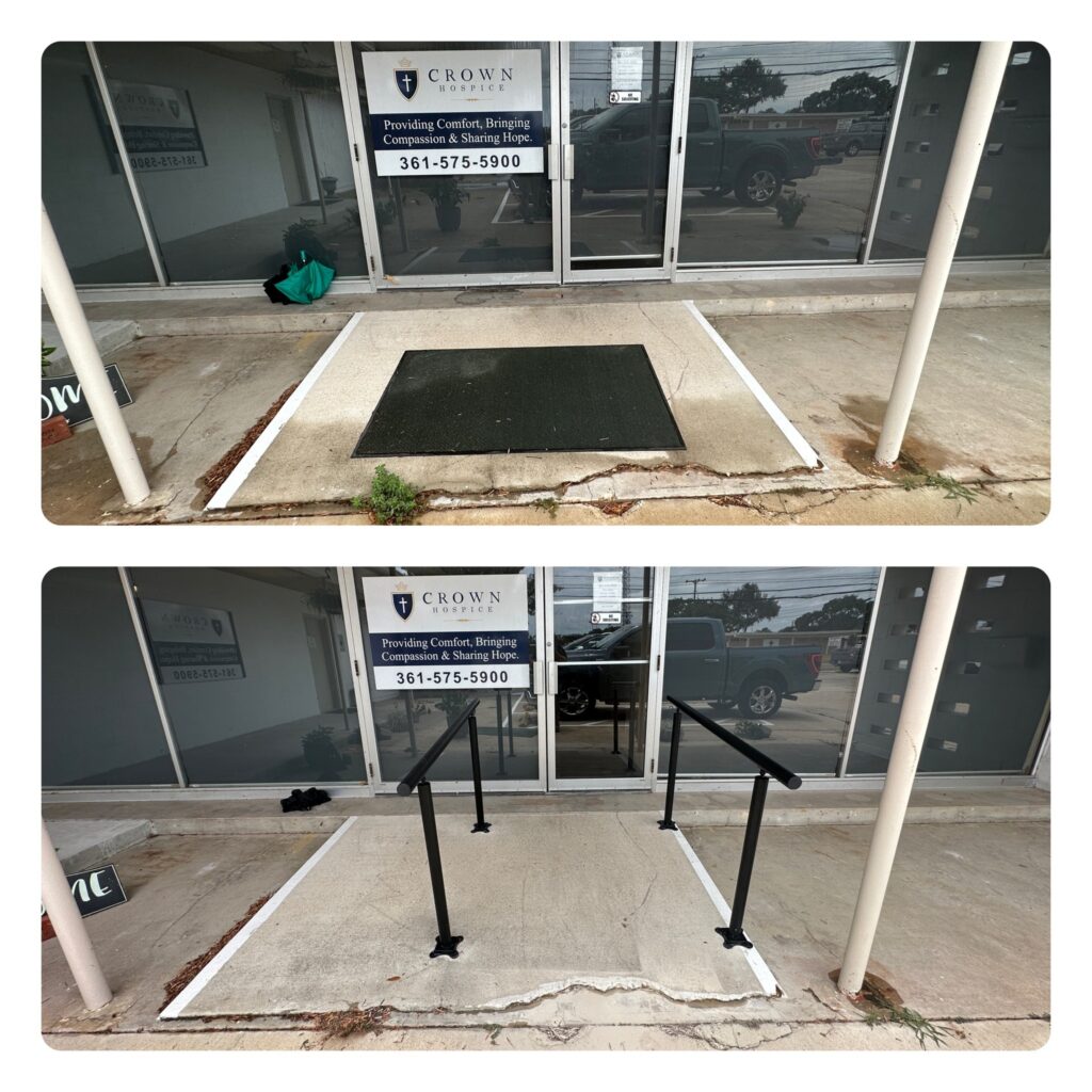 We mount rails near stairs, ramps, and entry points.