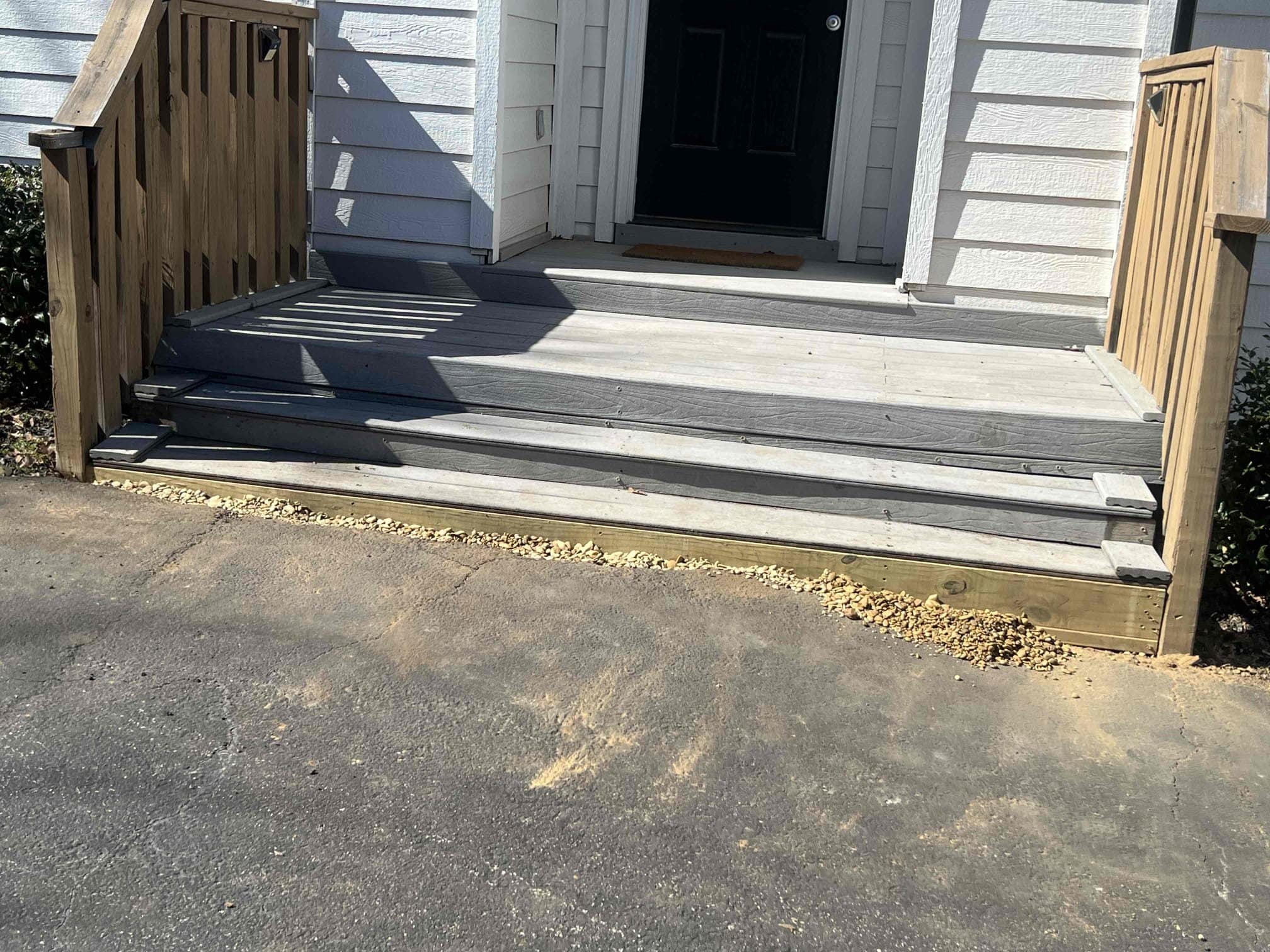 We repair damaged steps, rails, and porch surfaces. Whether it’s a few boards or the whole entry, we make sure it lines up, holds weight, and stays safe to use.