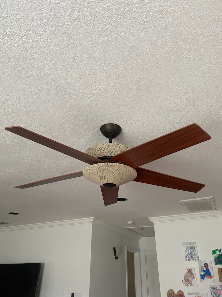 Ceiling fans can wobble, stop spinning, or short out over time. If a fan isn’t mounted to a box made for support, it may come loose or fail without warning. You might notice: