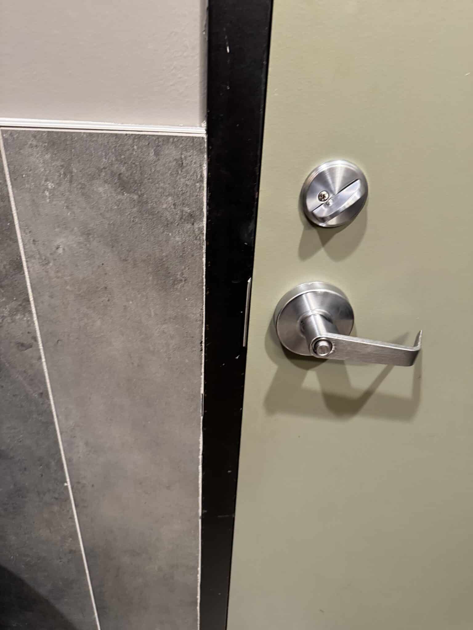 Adjusted a sticking bathroom door and corrected the back door closer so it shuts properly, then recaulked the sink for a tight seal. Secured patio umbrellas by drilling and fastening the bases, and checked the ice bins for edge damage and made needed touch-ups.