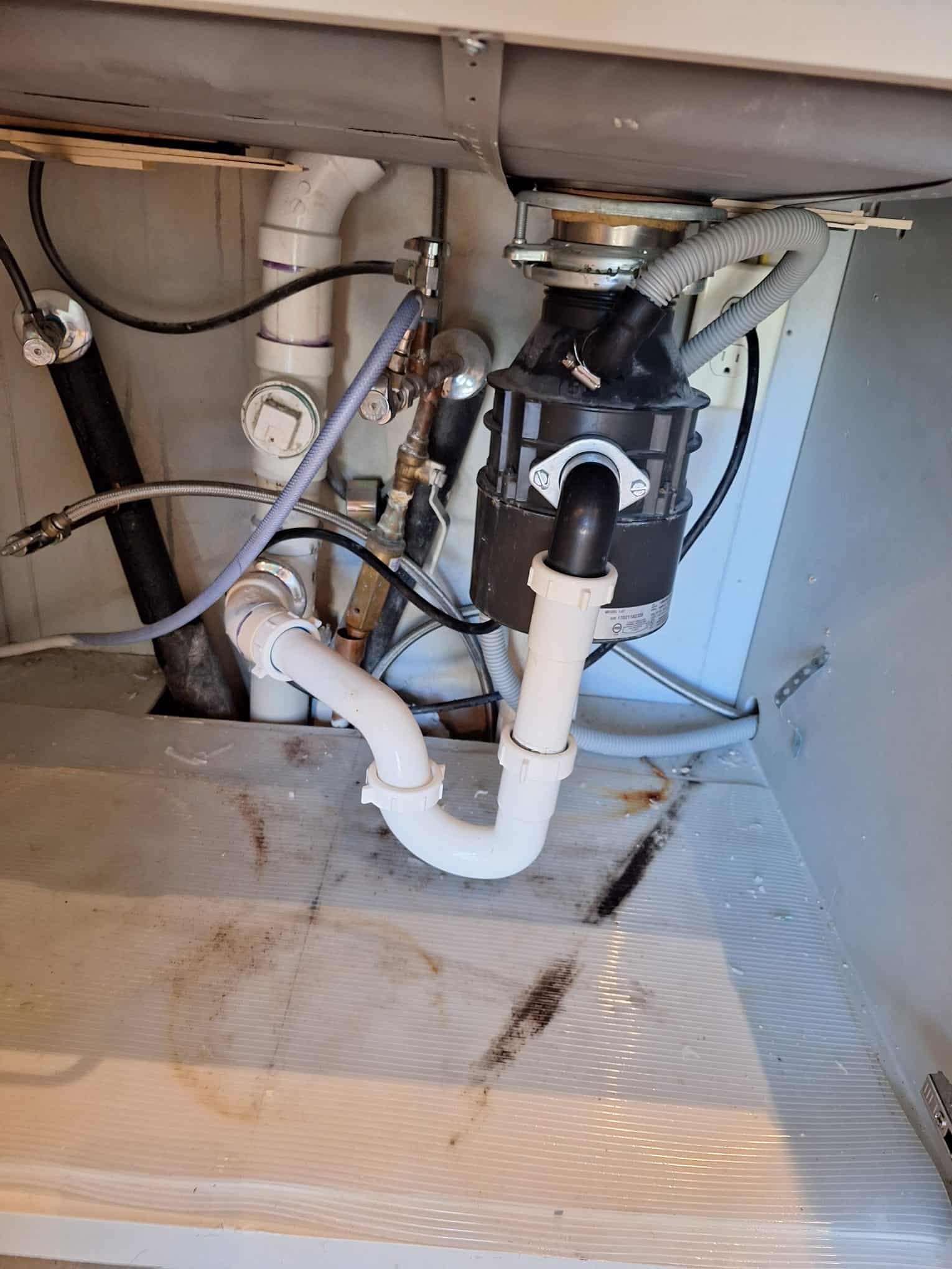 Repaired damaged drywall, matched texture, and touched up paint for a seamless blend. Fixed sink plumbing issues and left the area tidy.