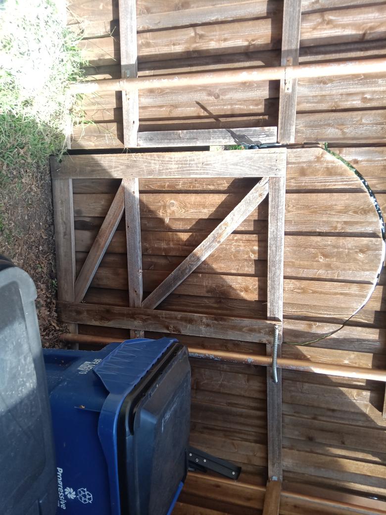 Trimmed the bottom of the gate and raised it so it wouldn’t drag, then set it to close and latch smoothly. Reinstalled and tightened the loose hinge hardware for a solid, clean swing.